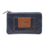 Description: Keys Ring Purse in Blue/Cognac made in 100% vegetable tanned Italian cow leather. 1 Coin Compartment; 2 Key Hooks